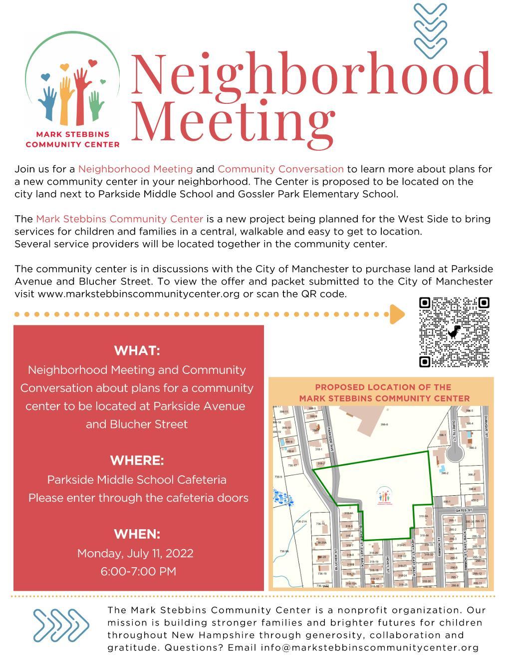Neighborhood Meeting - 6:00pm on July 11 at Parkside Middle School